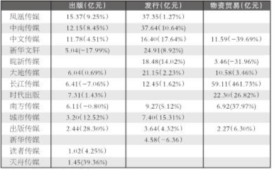上述上市出版企业虽然在整体营收上取得了不小的增长,但是非传统业务的贡献有限,增量仍然集中在对传统业务的深耕。15家企业的2016年半年报数据显示(如表5),其总营收同比增速为21.86%,增量为73.63亿元;若除去长江传媒上半年41亿元的大宗物资贸易业务,增速为9.69%,增量为32.63亿元,大部分增量仍来自于出版、发行业务,且营业收入总量的80%以上仍然来自于出版、发行和物资贸易业务。