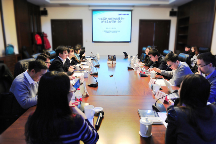 在研讨环节,清华大学法学院副教授崔国斌、阿里巴巴法务部法律研究中心副主任顾伟、中国信息通信研究院产业与规划研究所主任刘越就新书出版的重大意义、互联网治理形势和网络治理热点问题,如版权保护、网约车、中国政府和互联网大企业如何参与互联网名称与数字地址分配机构规则的制定、人才队伍建设等问题发表了各自的看法。
