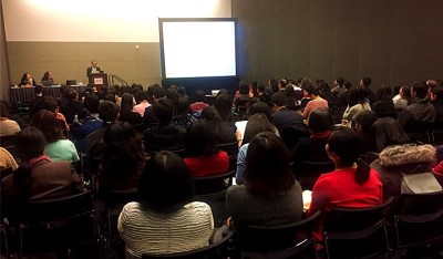 除此之外,我社在年会期间还成功举办了《新实用汉语课本(第三版)》、《中国的故事》、《小学中文》三套图书的新书发布会。我社教材总编审刘珣教授、波特兰州立大学刘美如教授、我校闻婷副教授分别从成人汉语教学特点、汉语教学中文化教学特点、儿童沉浸式汉语教学特点的角度探讨汉语教学法时,以上述三本新书为例,进行了精彩的报告。凭借前期充分的宣传准备和三位教授的精彩讲解,发布会会场人员爆满,120人的会场挤进150余人。与会老师对精彩报告和三套图书产生浓厚兴趣,使得带到展会的三套图书全部售罄。