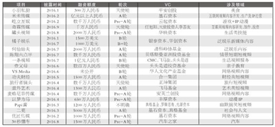 2016年短视频行业融资情况表(来源:微信公众号跨星)