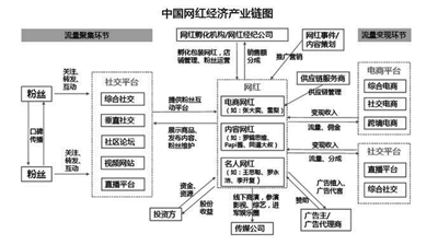 艾瑞咨询与微博联合发布的《2016网红生态白皮书》显示,网红正成为一个产业。当前网红的竞争主要集中在颜值、内容、团队和制作能力四个方面,视频、直播和电商是网红经济发展的三大趋势。网红经济产业链以网红本人为核心环节,经由上游的流量聚集和下游的流量变现,实现网红经济的蓬勃发展。