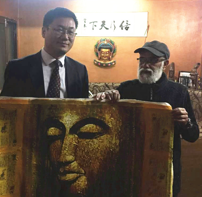 (图7:迪文德拉•高塔姆向李永强社长赠送油画)