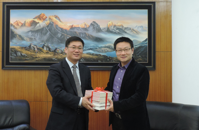 此外,12月20日,李永强社长拜会了中国驻尼泊尔大使馆江伟主任,汇报了人大出版社与尼泊尔出版社的合作情况以及未来的发展目标和长期规划。双方还就开展中尼之间的翻译出版合作、学术交流合作以及组织中国内容图书的宣传和推广活动等方面,进行了深入探讨。会后,李永强社长还向江伟主任捐赠了数十种中英文版图书,用于使馆赠阅尼泊尔当地读者。