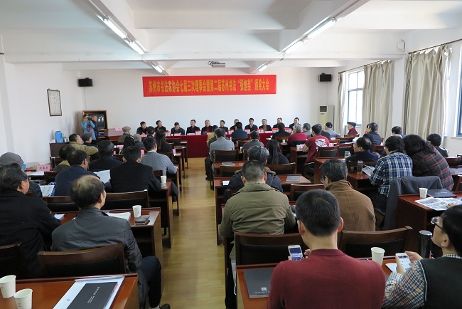 3月2日,苏州市书法家协会七届三次理事会暨第二届苏州书法“张旭奖”颁奖大会在苏州大学出版社中国书法文化传播基地举行。苏州市文联党组成员、副主席倪彦,苏州市书协名誉主席兼艺术指导委员会主任华人德,苏州市老领导、市书协艺指委委员冯瑞渡、江苏省书协副主席、苏州市书协主席王伟林,苏州大学出版社有限公司董事长、中国书法文化传播基地主任张建初,苏州市文联创研部主任庞曦,苏州市书协七届理事会成员、艺指委委员、顾问、名誉理事以及第二届苏州书法“张旭奖”获得者参加会议。