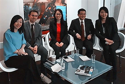 从左至右依次为Singing Grass创始人兼伦敦书展亚太区顾问刘晓爽,中英贸易协会Mark Heldey, 外研社副社长兼北外国际教育集团总裁范晓虹;江苏凤凰美术出版社社长葛庆文, 中图总公司数字发展中心海外资源部(CNPIEC)经理赵元 秦格儿 摄影