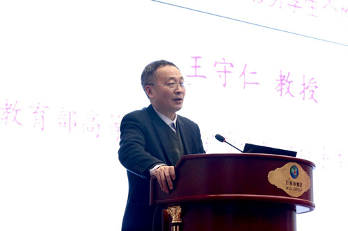 教育部高等学校大学外语教学指导委员会主任委员王守仁教授做主旨发言,题目是“主动适应高等教育发展新形势,做好服务学校人才培养、服务学生个性化发展的文章”。王守仁教授对《指南》作了高屋建瓴的解读,重申了《指南》中提到的三个目标,即基础目标、提高目标和发展目标。他特别强调在应用中发展语言能力,“语域”的引入是《指南》的一大特点;强调文化承载着一个国家的精神价值,应推动中华文化走出去;强调多样化、个性化的高等教育,将信息技术与教育创新发展结合。