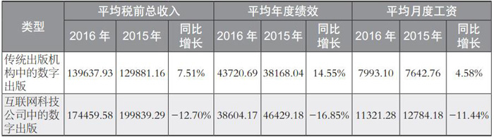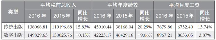 表1 2016年传统出版与数字出版从业人员收入对比情况(单位:元)