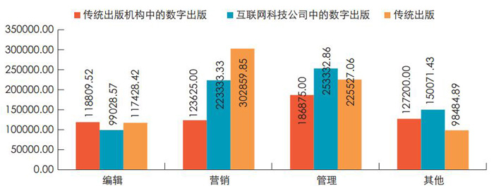 从图1可以看出,除传统出版由于营销类管理岗位样本占比较大,导致其2016年平均税前总收入飙高之外,各领域的管理岗位薪酬优势均较为明显,特别是互联网科技公司中的数字出版管理岗位最为突出。