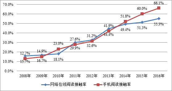 网络在线阅读接触率、手机阅读接触率连续八年上升