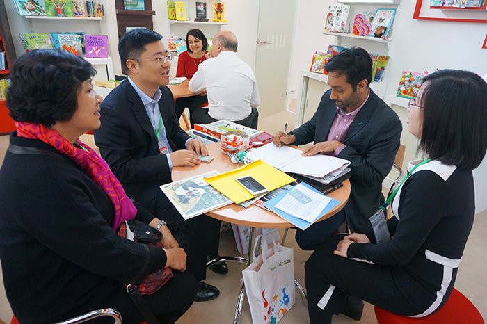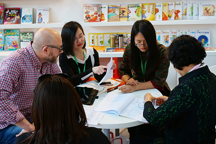 在短短几天时间里,教育科学出版社与近20家童书类出版社进行了洽谈。其中,通过与美国学乐出版集团、企鹅兰登出版集团、英国牛津大学出版社、英国凯石出版社、英国夸尔托出版集团、意大利福德出版社、丹麦全球出版社、澳大利亚邦尼出版集团、瑞士牛牛出版社、比利时米佳德出版社等的交流,学习了解这些出版社的出版经验和出版动态,为图画书版权合作打下了初步基础,也启发了编辑对原创图画书的策划思路。在众多优秀的儿童读物中,教育科学出版社参展的编辑谨慎把握、优中选优,从文学艺术以及教育教学的角度,慎重挑选了数本既富有儿童情趣、幽默诙谐,又有益于教育教学的优质图画书,探讨版权引进工作。