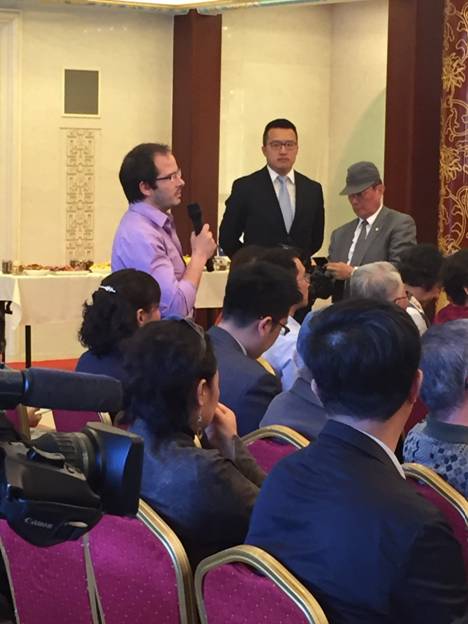 在互动环节,徐教授回答了新华社和哥伦比亚《时代报》记者提出的关于中拉文化交流,中拉传统习俗文化以及“一带一路”对中拉文化交流的影响等问题。徐教授风趣诙谐的语言赢得了在座嘉宾的热烈掌声。