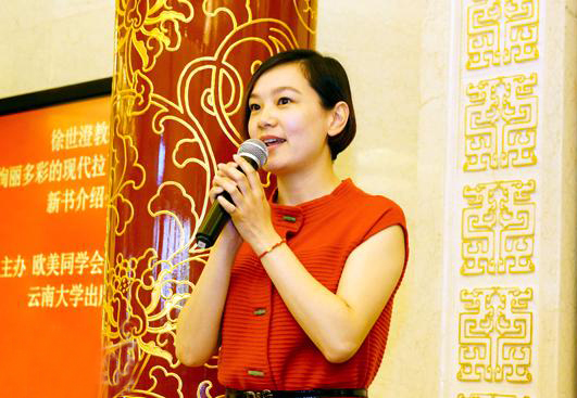 云南大学出版社总编辑殷永林教授首先表对徐世澄教授、欧美同学会和出席首发式的各界朋友表示热烈欢迎和衷心感谢,对徐世澄教授所著的《绚丽多彩的现代拉丁美洲文化》一书的出版表示诚挚的祝贺。之后,殷总编重点介绍了《绚丽多彩的现代拉丁美洲文化》的出版背景,指出该书是云南大学出版社和中国社会科学院世界文明比较研究中心共同策划出版的《青少年世界文明素质教育文库》丛书之一。他说:“在新的形势下,云大出版社要具有更加广阔的国际视野和全球化眼光,更有文化担当,向当代的年轻朋友们介绍自古至今世界上一些主要文明的历史发展概况,普及有关各种不同文明的基本知识。让中国人民更好地了解世界,让世界人民更加认识中国”。“云南大学出版社积极服务于国家战略,十分愿意为中国文化与拉美文化的交流作出自己的贡献。”
