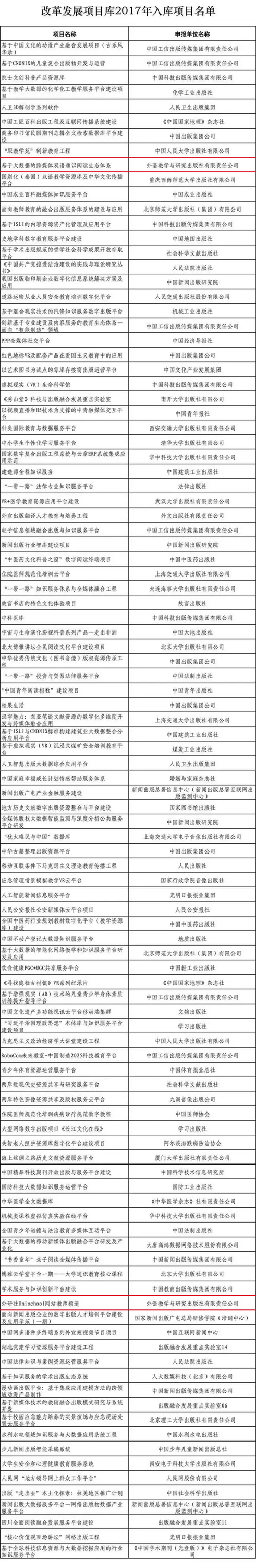 国家新闻出版广电总局关于发布总局改革发展项目库2017年入库项目名单的通知: