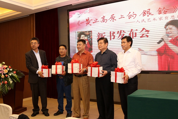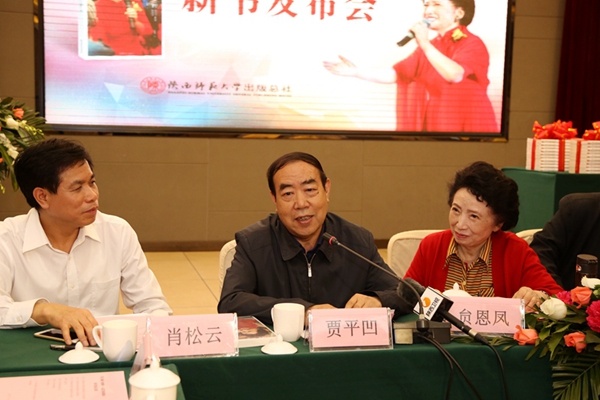 贾平凹说:“几十年前我就听贠恩凤的歌,现在还在听她的歌。贠恩凤一生很传奇、很辉煌!她是真真正正的人民艺术家。”5月4日上午,陕西师范大学出版总社在陕师大启夏苑举行《黄土高原上的银铃——人民艺术家贠恩凤》新书发布会。“时代楷模”贠恩凤老师,中国作家协会副主席、陕西省作家协会主席贾平凹,陕西省文联原副主席、文化学者萧云儒,陕西省委宣传部出版处孙锋利,陕西省新闻出版广电局副巡视员肖松云,陕西省作协副主席、西安市作协主席吴克敬,西北大学原副校长、教育部长江学者李浩,陕西广播电视乐团团长宋小雷,陕西省新闻出版局原局长高英杰,陕西电视台原副台长张书省等上百位嘉宾出席发布会。《黄土高原上的银铃——人民艺术家贠恩凤》作者王新民,陕西师范大学出版总社领导刘东风、魏立安、雷永利、屈瑞新、康维铎及人文学术出版中心主任冯晓立、该书责任编辑邓微参加了发布会。新华社、人民日报、光明日报、中新社、中央人民广播电台、文化艺术报、陕西日报、陕西画报、西安晚报、华商报、三秦都市报、陕西新闻广播、陕西广播电视台、西部网、西安广播电视台等众多媒体到会采访报道。发布会由西安电视台主持人孙维主持。