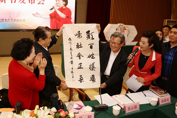 贠恩凤老师致辞时说,感谢今天有这么多领导、同事、朋友们来到现场祝贺新书发布。自己六十六年来只做了一件小事,就是到人民群众中间去唱歌,然而人民群众却给了她众多的、巨大的荣誉,她无以为报,只有更加用真情真意演唱,来报答伟大的祖国、伟大的人民,和这片黄土地对她的养育之恩。她还在现场倾情演唱了《山丹丹开花红艳艳》。