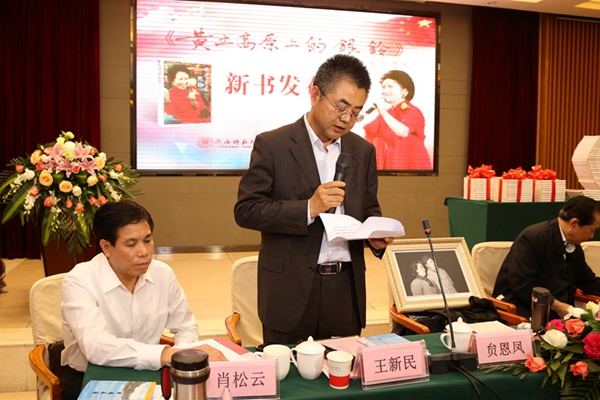 吴克敬、李浩、张书省、商子雍、党永庵、宋小雷、韩怀仁、陈若星等嘉宾也先后发言,回忆了贠恩凤老师到基层演出时的难忘画面,称赞贠老师是真正的人民艺术家,表示要向贠恩凤老师学习,执着追求,勇于奉献。大家评价王新民的新书集真实性、可信性、史料性、时代性、旗帜性于一体,是一部弘扬社会真善美、正能量的力作,希望出版社出版更多宣传陕西当代著名文学艺术家的精品。作者王新民发言时,介绍了自己创作《黄土高原上的银铃——人民艺术家贠恩凤》一书的历程和体会,贠恩凤老师的事迹深深地感动了他,他有责任用文字表达出这份崇敬,传播出一份力量,让榜样的力量引导人、鼓舞人、塑造人。