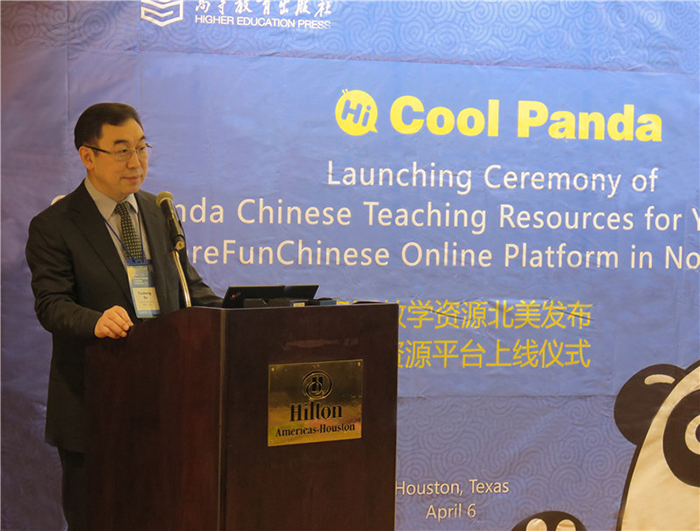 4月6日上午,高教社举办了“Cool Panda 少儿汉语教学资源北美发布暨MoreFunCHINESE 资源平台上线仪式”。社长苏雨恒、国家汉办副主任静炜、美国大学理事会副主席Linda Liu在发布会上致辞,美国大学理事会中文项目部主任Robert Davis、全美中文教师协会理事会成员Lucy Lee,以及来自全美各地的孔子学院院长、本土汉语教师等参加发布会。发布会得到了我国驻休斯敦总领馆教育处的大力支持。