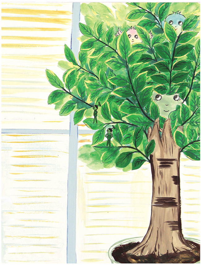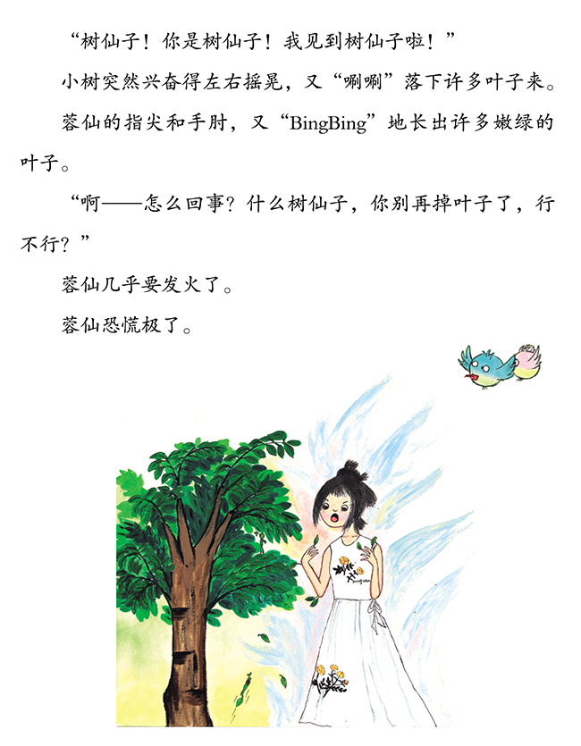 作者借蓉仙变成树这样一个荒诞又有趣的故事,展现一个人自由发展的成长历程。开始长叶子而又还没有变成树的过程,寓意一个人内心连自己都未察觉的觉醒,这个时期,是迷茫彷徨的,是痛苦无助的,找不到未来,找不到方向;变成树的过程,则是一个人蜕变的过程,一开始会害怕改变,害怕他人异样的眼光,会缺乏存在感,无所适从,但渐渐地,曾经的迷茫痛苦不见了,取而代之的是不断学习,汲取营养,快速成长。