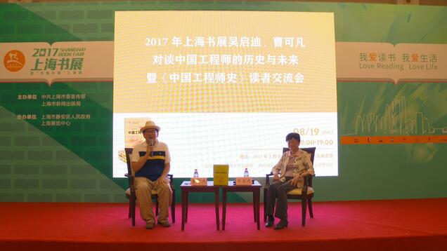 8月19日,由同济大学出版社主办、同济大学团委和同济大学学生处协办的《中国工程师史》读者交流会在上海书展举行。中国工程教育专业认证协会理事长、联合国教科文组织国际工程教育中心主任、国家自然科学基金委管理科学部主任吴启迪教授和著名主持人曹可凡围绕“中国工程师的历史与未来”展开对谈。