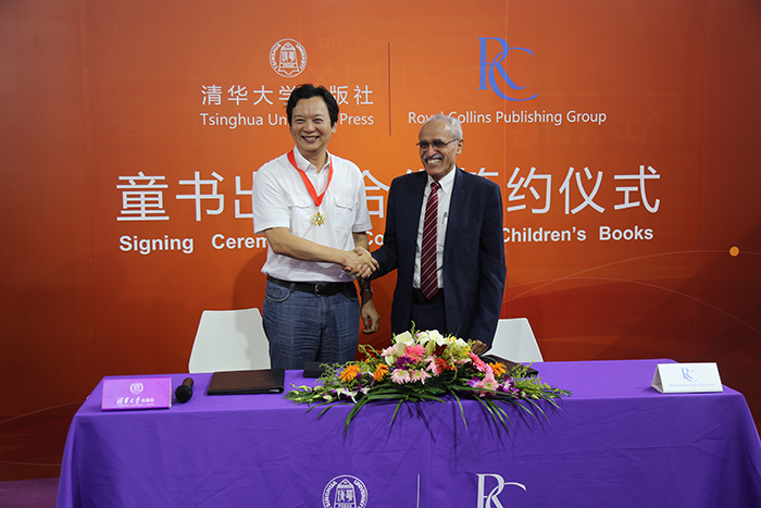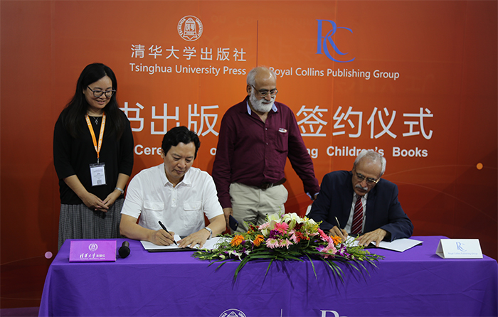 书展开幕当天下午,清华大学出版社与Royal Collins集团就出版《中国名家经典原创图画书》系列部分精选图书的英文版举行了签约仪式。正如清华社宗俊峰社长在签约仪式上所说:“世界各国需要交流与合作,“一带一路”伟大倡议的目标之一是实现民心相通,特别是在各国青少年心中播撒友谊和交流的种子。童书“走出去”是实现文化交流的重要方式。”Royal Collins 集团董事Mohan先生表示,“之所以选中这个系列图书,是因为这些书是由中国优秀的艺术家根据中国经典的传统故事创作的绘本,从各个角度反映了中国人的精神品格,可以帮助海外读者在欣赏中国风格绘画的同时了解优秀的中国文化。”Royal Collins 集团表示,争取在一年内出版此次签约的英文版图书,并利用该公司丰富的国际运作经验和广泛的销售网络在海外推广。