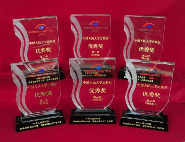 在“中国图书对外推广计划”中,中国人民大学出版社连续八年在单体出版社综合排名里取得四次第一、四次第二, 是中国出版走出去当之无愧的排头兵。