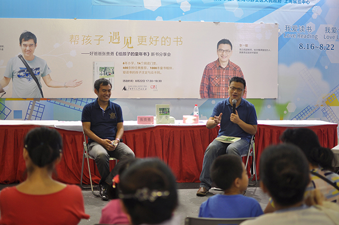 该书出版适逢上海书展、北京国际图书博览会,因此,出版方神秘岛特别策划了“帮孩子遇见更好的书”——好爸爸张贵勇《给孩子的童年书》在上海、北京两地的新书分享会,并特别邀请了知名阅读推广人李一慢、中国关心下一代工作委员会高级专家顾问蔡景昆,跟作者一起在活动现场畅聊、分享各自多年来对亲子阅读、少儿阅读的观察与感悟。