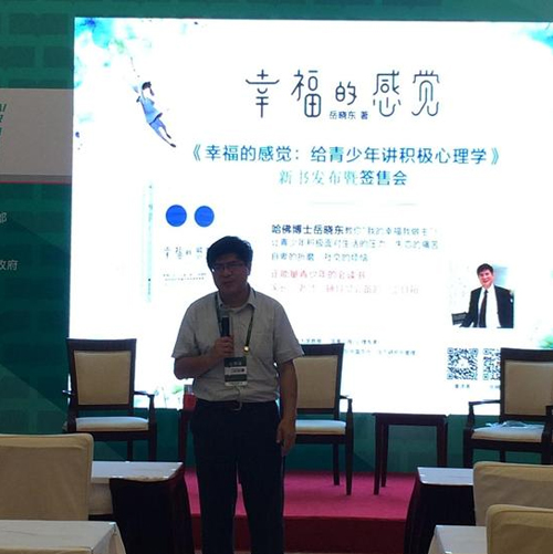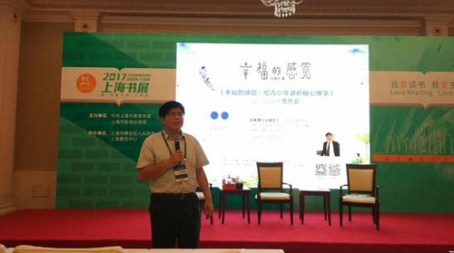 2017年8月19日上午,岳晓东教授当天一早直接从绍兴的活动赶来,匆匆走入上海展览中心友谊会堂一楼会场,即《幸福的感觉:给青少年将积极心理学》发布会现场,简短介绍过后,岳教授便开始了他风趣幽默、声情并茂的主题报告,迅速把现场读者带入到报告当中。