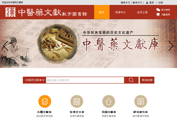 近日,“汉籍”家族又添新成员——《中医药文献库》1.0版正式上线试运行,官网主站地址:http://zhongyiyao.HanjiLibrary.com。《中医药文献库》又称《中医药文献数字图书馆》,是由我社自主投资、独立开发、市场化运营的古籍数据库产品,是《汉籍数字图书馆》(简称“汉籍”)2.0版的特色专库之一。