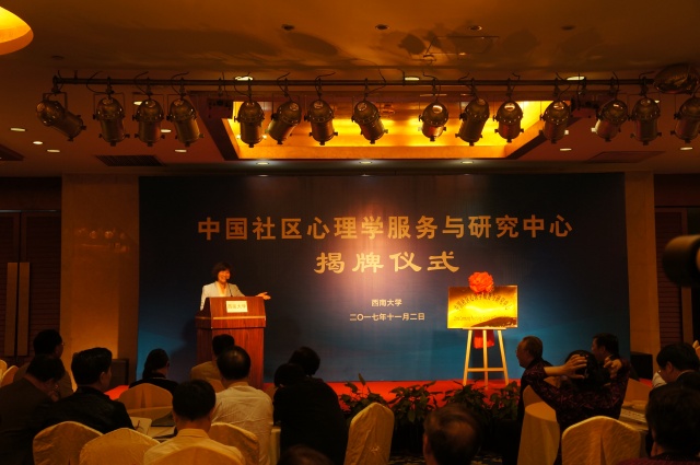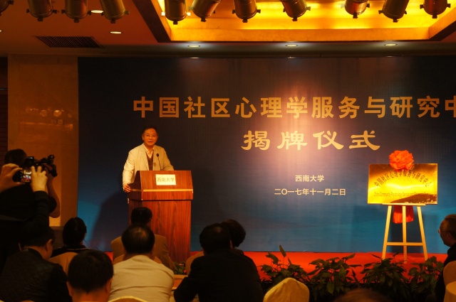 缙云叠翠,嘉陵流碧。2017年11月2日下午,值第二十届中国心理学学术会议召开之际,中国社区心理学会举办了“中国社区心理学服务与研究中心揭牌仪式”和“社区心理学译丛”新书发布会,近两百余专家教授参加了仪式。西南大学黄希庭教授、张卫国校长和中国心理学会理事长白学军教授、西南师范大学出版社蒋登科副社长先后致辞。西南师范大学出版社高教分社组织翻译出版的“社区心理学译丛”首批4部图书,也同时进行了新书展示和发布。