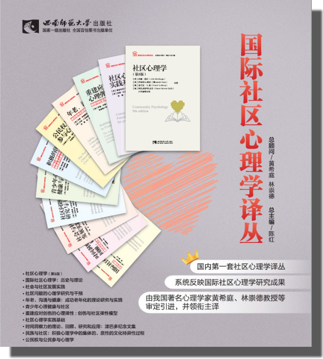 作为国内首套社区心理学译丛,套书精选了全球在社区心理学方面最为凸显的十本著作引进,由黄希庭教授任总顾问,陈红教授任主任。首批选取了泰勒·弗朗西斯出版公司、牛津大学出版社等国外著名出版商出版的《社区心理学实践基础》《社会与社区发展实践》《重建应对创伤的心理弹性》《公民权与公民参与》等十本著作,内容涵盖了社区心理健康服务、理论探讨及教材等诸方面,并聘请相关心理学教授执笔翻译。社区心理学的研究在国内刚刚起步,“译丛”的及时引进,向国内读者展示了国际社区心理学方兴未艾的态势,呈现了该领域内专家百花齐放的研究视点,有助于我国读者窥斑见豹,构建中国特色的社区心理学研究体系,促进和谐社区建设。