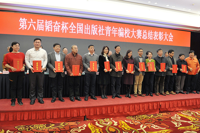 12月2日上午,由国家新闻出版广电总局主办,中国出版协会、韬奋基金会和中国编辑学会承办的第六届韬奋杯全国出版社青年编校大赛落下帷幕。在来自全国30个省区市的216家出版单位组成的138支代表队共442名选手(其中编辑299人,校对143人)的激烈角逐中,中国人民大学出版社派出的李文、李伟、徐德霞三名选手表现优异,协力获得团体一等奖!同时为中国人民大学出版社赢得优秀组织奖的殊荣!新闻出版广电总局人事司副司长李宏葵、中国出版协会常务副理事长邬书林、韬奋基金会理事长聂震宁以及中国版协编校工作委员会主任张增顺、副主任潘正安等领导出席大会并为获奖者颁奖。中国人民大学出版社李永强社长、培训组王宏霞老师及三位选手代表人大出版社出席了此次颁奖大会。