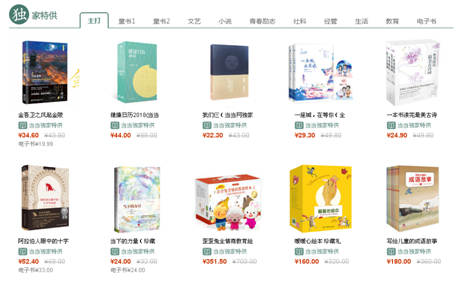 当当首页开设有“独家特供”栏目,为读者提供当当定制版图书