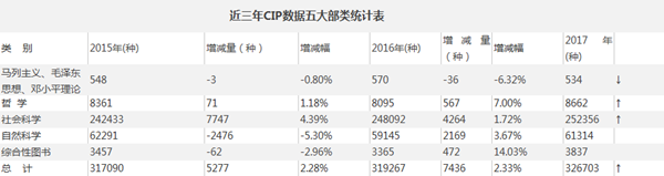 表1 近三年CIP数据五大部类统计表