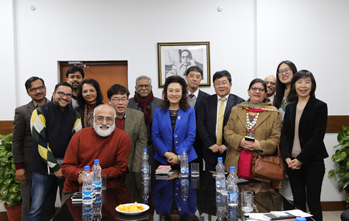 1月8日下午,人大社代表团一行与皇家柯林斯出版集团董事会的成员们一同拜访了印度安贝德卡大学(Ambedkar University)。安贝德卡大学副校长贾汀•巴特教授率学校商学院、设计学院、人文学院等学院的教授接待并欢迎代表团一行。会上贾汀•巴特教授和刘志副总编分别向对方介绍了安贝德卡大学和中国人民大学的情况、学校开设的特色专业和在校生情况,就对方学校的细节情况进行了提问。安贝德卡大学的教授们还与代表团的成员们就人文社科领域的合作、双方学校的学科建设以及在经济文化等特定领域的学术议题进行了沟通交流。双方的专家学者都认为,通过双方的沟通,交换彼此不同的看法和声音,能够更好地促进两国间的了解,互相学习对方在不同领域的最新科研成果,为两国在各个领域的发展做出贡献;通过学术上的沟通可以更好地推动各自理论体系的建设,打破传统的只向西方理论体系看齐的局面。安贝德卡大学成立于2008年7月,位于印度德里,是一所公立的研究型大学。目前学校下设12个学院,主要开设经济和人文社会科学领域的本科及研究生专业课程。学校的宗旨是不断推进人文及社会科学领域的研究,并为印度和全世界在印留学的学生提供高质量的课程、项目和相关科研条件。