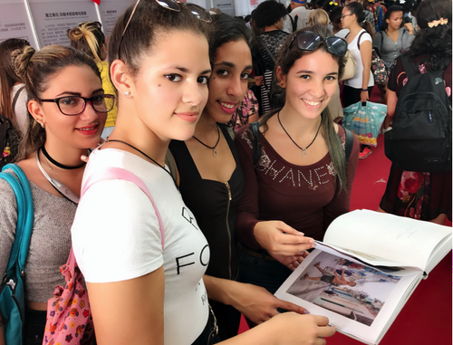 古巴学生翻阅外研社出版的《古巴之梦》摄影集