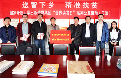4月23日,正值第22个“世界图书日”,国家开放大学出版传媒集团(以下简称出版集团)向天津市大唐庄镇东杜村、小马庄村图书捐赠仪式在东杜村村委会举行。国家开放大学出版传媒集团总经理匡贵秋、副总经理张暾、开放教育事业二部主任赵杰,天津广播电视大学副校长王繁珍,东杜庄村书记张伯明、小马庄村书记马俊明以及部分村民代表出席了捐赠仪式,活动由天津电大驻宝坻大唐镇帮扶组组长王鲲主持。