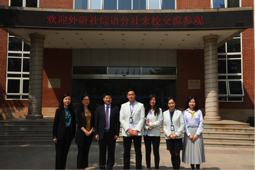 最后,在海淀外国语学校多语种中心秦主任的陪同下,彭社长一行参观了幼儿园、小学和中学的教学区域及活动场馆、多语种教学区和新成立的多语种阅览室。海淀外国语学校的校园建设以及多语种学科的教学和发展理念给大家留下了很深的印象!