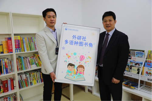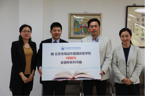 4月26日外研社综合语种出版分社社长彭冬林一行受邀参加海淀外国语学校“世界阅读日”系列活动——多语种阅览室成立及赠书仪式。
