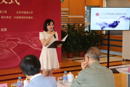 北京外国语大学副校长贾德忠介绍了“中华思想文化术语传播工程”的项目背景,并指出,此次举办的中华思想文化术语大赛,不仅肩负着宣传推广中华思想文化术语的社会责任,更是让当代中国青少年作为传播中华文化的使者,将中国优秀的传统文化推向国际舞台。大赛的各环节,正是为加深青少年对中华思想文化的认识而精心设计的,相信能让参加的青少年们获益良多。