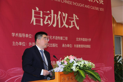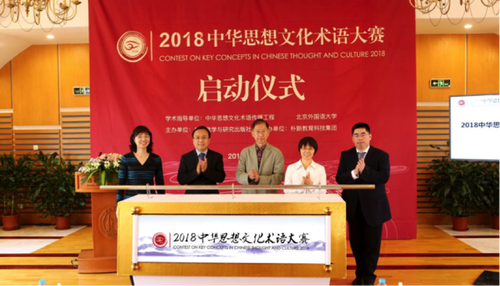 5月4日,由北京外国语大学外语教学与研究出版社(外研社)主办、朴新教育科技集团承办的“2018中华思想文化术语大赛”启动暨“青少年传统文化创意设计邀请赛”颁奖仪式在北京隆重举行。中国翻译协会副会长陈明明,北京外国语大学副校长贾德忠,教育部语言文字信息管理司规划协调处处长王奇,外语教学与研究出版社副总编辑章思英,朴新集团环球教育、朴新集团啄木鸟教育总裁张洪伟,以及来自主办与承办单位的相关负责人和“中华思想文化术语传播工程”专家代表出席了本次活动。