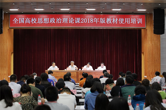 党的十九大召开后,按照党中央统一部署,中宣部、教育部立即组织对已出版的马工程重点教材进行全面系统修订。目前,《马克思主义基本原理概论》《毛泽东思想和中国特色社会主义理论体系概论》《中国近现代史纲要》《思想道德修养与法律基础》4种高校思想政治理论课教材已完成修订并投入使用。为帮助任课教师进一步提高驾驭新教材的能力,确保用好新教材,在中宣部指导下,教育部依托高教社网络培训平台组织实施此次培训。培训在北京设主会场,在各省(区、市)和新疆生产建设兵团以及1833所高校设分会场。根据安排,在6天培训期间,由教材编写修订组首席专家和主要成员组成的培训专家组,采取现场培训和视频同步直播相结合的形式,对四门课程2018版教材进行集中培训,全国共有66365名教师参加。