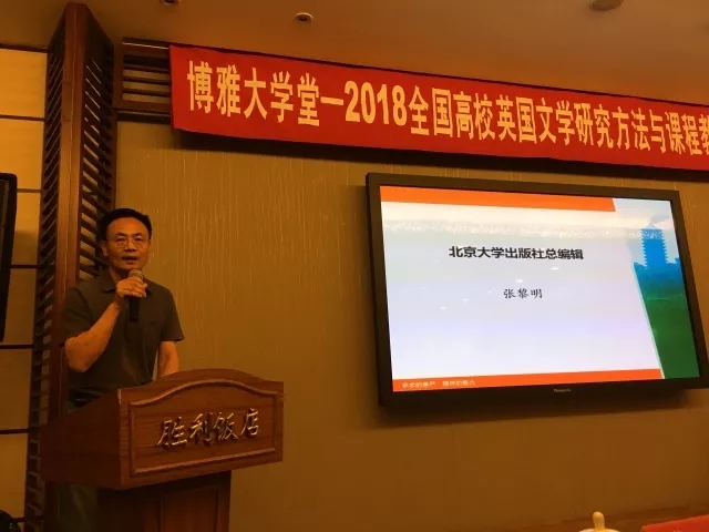 2018年5月19-20日由北京大学外国语学院、《国外文学》杂志、北京大学出版社联合举办的“2018全国高校英国文学研究方法与课程教学高端论坛”在北京成功举行。来自全国高校百余位专家学者、高校教师参加了此次论坛。北京大学出版社张黎明总编辑在开幕式上发表了热情洋溢的讲话,表达了对各位专家学者、参会教师的热烈欢迎和诚挚谢意。