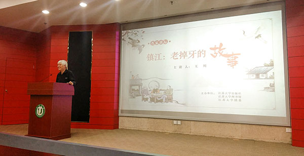 5月9日下午,由江苏大学出版社、江苏大学图书馆、江苏大学团委共同主办的名家讲坛,在江苏大学图书馆一楼报告厅举行。这期名家讲坛邀请到的主讲嘉宾是镇江文化名人王川,他为大家讲述的是“镇江:老掉牙的故事”。