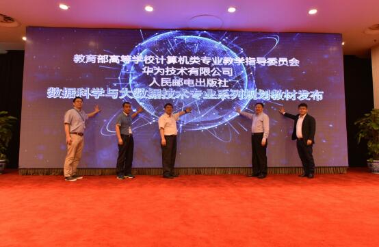 6月9日,由教育部高等学校计算机类专业教学指导委员会、华为技术有限公司、人民邮电出版社联合主办的“全国高校数据科学与大数据技术专业建设论坛暨教育部高等学校计算机类专业教学指导委员会—华为数据科学与大数据技术专业系列规划教材发布会”在北京召开。中国工程院院士邬贺铨,教育部高等学校计算机类专业教学指导委员会副主任陈钟,华为技术有限公司EBG中国区副总裁杨文池,华为EBG全球认证与培训部部长冯宝帅,人民邮电出版社党委书记、社长顾翀,以及各高校计算机及相关院系领导、课程负责人和骨干教师等相关学术界、教育界、产业界专家200多人出席论坛暨发布会。人民邮电出版社副社长张立科主持论坛。陈钟、杨文池、顾翀等嘉宾共同在大屏幕上按下手印,正式发布“数据科学与大数据技术专业系列规划教材”。