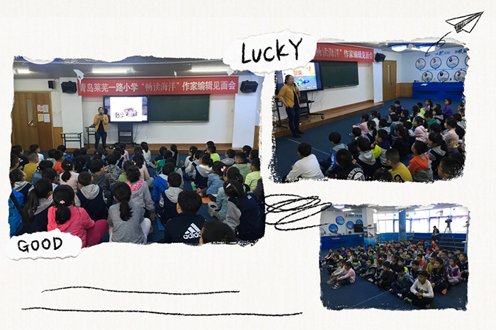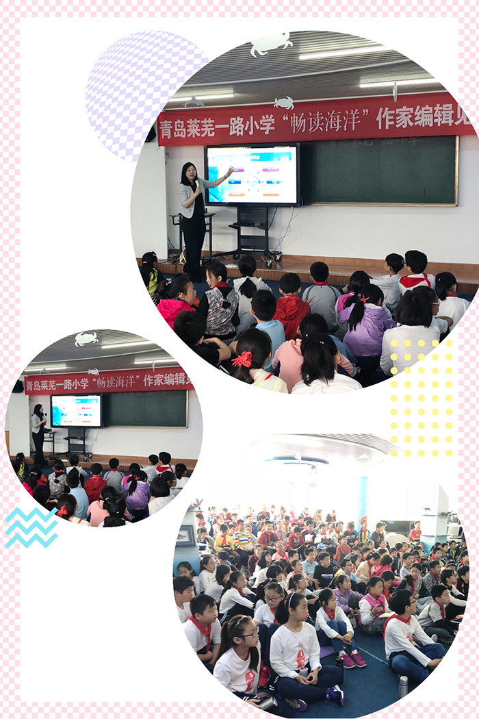 当天下午,文学博士何卫青老师带着《鱼歌》一书引领着三年级的学生畅游在想象力的海洋中。何老师与孩子们进行了内容丰富的互动游戏,在讲座中同大家一起朗读书中的段落,充分挖掘学生天马行空的想象力,在一片欢声笑语中把海洋的无穷魅力植入了每一个学生的心灵中。 中国海洋大学出版社携手青岛莱芜一路小学开展的“畅读海洋”作家、编辑见面会在提高学生对海洋科学的认知,培养学生对海洋文学的热爱,增强学生的海洋意识方面必将起到积极的作用。