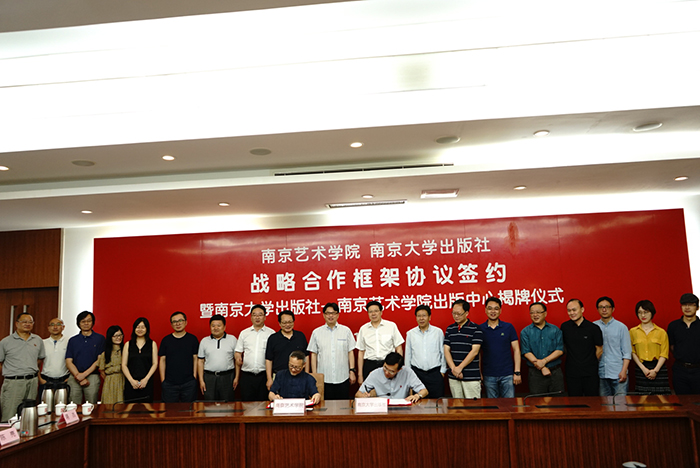 6月22日上午,南京艺术学院•南京大学出版社战略合作框架协议签约仪式暨南京大学出版社—南京艺术学院出版中心揭牌仪式在南京艺术学院行政楼举行。南京艺术学院院长、党委副书记刘伟冬,南京艺术学院副院长、党委常委谢建明,南京大学校长助理范从来,南京大学社会科学处处长王月清,南京大学出版社社长兼总编辑金鑫荣以及南京艺术学院的相关负责人、南大社代表出席了会议。 南京艺术学院院长刘伟冬首先介绍了南京艺术学院的发展历史和近几年来学校在学科建设、科学研究方面取得的成绩。并对新成立的南京大学出版社-南京艺术学院出版中心助力学校在人才培养、学科建设、科研创作等方面发展给予了期待。 南京大学校长助理范从来教授在讲话中谈到对艺术的尊敬与向往,南京艺术学院历史悠久、底蕴深厚,正如校训“闳约深美”所体现的,南艺是中国综合实力最强的综合型高等艺术学府之一。作为同城的兄弟院校,南京大学与南京艺术学院一直以来有多方面的合作。南京大学出版社积极服务南艺的教学科研,与南艺的院系、学者有着良好的合作联系。南京大学出版社—南京艺术学院出版中心的成立,必将推动两校、院社之间的合作进程。并提及了几点希望,首先,希望“中心”扎根南艺、服务南艺,做好南艺精品学术的出版工作。其次,加强文化创意产业的合作,共同打造中心特色文化品牌。第三,积极服务南艺的教育科研,积极探索融媒体出版与教育、科研相结合的融合创新发展之路。最后,做好为两校服务的衔接作用,让“中心”作为两校合作的平台,发挥好校际合作的桥梁和纽带作用。 随后,南京大学出版社社长兼总编辑金鑫荣与南京艺术学院研究院副院长、学报编辑部主任李立新代表双方签署合作协议,刘伟冬院长与范从来校长助理为“南京大学出版社——南京艺术学院出版中心”揭牌。南京大学社会科学处处长王月清代表南京大学出版社向南京艺术学院图书馆赠书。南京艺术学院刘伟冬院长向南京大学出版社金鑫荣社长授予南京艺术学院客座教授的荣誉称号。