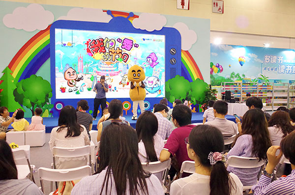在《我们的节日》新书发布会的现场,主持人与小朋友积极互动,亲切而欢快的气氛吸引了很多家长和小朋友的参与。