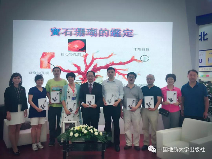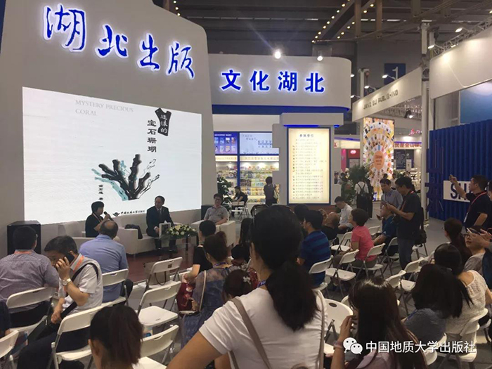 中国地质大学出版社借此机会,在湖北展区举行了《迷漾的宝石珊瑚》《登峰造极》新书发布和签售会。湖北省新闻出版广电局副局长谢铭女士为《迷漾的珊瑚》进行了推荐,她首先对地大出版社坚持出版特色鲜明的专业化图书给予了极大的肯定,珠宝类图书作为地大社的特色品牌一直以来也受到读者的青睐。她从珊瑚的历史文化、生态保护、大众喜好等几个方面向广大读者进行了推荐,希望地大社继续做好特色出版,传播珠宝文化。湖北省新闻出版广电局发行处处长李耕先生也出席了新书发布会。《迷漾的宝石珊瑚》作者中国地质大学台湾校友会会长简宏道先生随后给广大读者从东西方的珊瑚历史文化、珊瑚的生长繁殖及其构造,宝石珊瑚的分类与仿制品优化处理的区别;通过颜色与净度分级表,区分购买的宝石珊瑚等级;不同成分的宝石珊瑚的保养方法;宝石珊瑚的市场与选购要素等方面作了精彩的分享,引起了现场读者的浓厚兴趣。《登峰造极》作者之一牛小洪教授,全面介绍了“7+2”计划实施过程中艰苦卓绝的经历,诠释了“敢为人先,追求卓越”的武汉精神。签售会取得了圆满成功。
