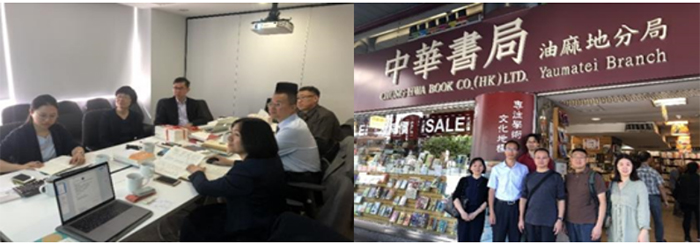 在中华书局(香港)公司总部,出版社一行观看了中华书局百年纪念宣传短片,重温中华书局的沧桑历史。中华书局香港公司的业务在2012年后开启新的发展模式,建立多个子品牌,继承和发展学术出版,拓展香港题材专题出版,兼营书店,投资文化项目等。中华书局(香港)公司总经理、总编辑赵东晓,副总编辑周建华、副总经理陈超英等在会谈中表示,暨南大学出版社具有百年学府的学科优势及毗邻港澳的地域优势,近年来在华侨华人、华文教育、中华传统文化和岭南文化等优势、特色领域有丰富的出版成果。双方今后可建立密切交流机制,在版权及营销等领域加强合作,为粤港两地读者呈现更多精品读物。