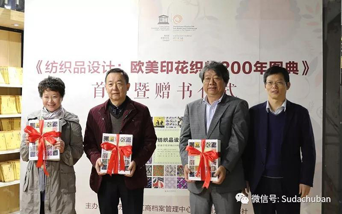 2018年11月21日,由美国纽约设计馆创始人苏珊•梅勒(Susan Meller)和荷兰视觉作家约斯特•埃尔弗斯(Joost Elffers)著、苏州大学出版社出版的《纺织品设计:欧美印花织物200年图典》首发式在苏州凤凰书城中版书房举行。首发式由苏州市工商档案管理中心、苏州大学出版社主办,本书译者之一、高级设计师丁伟,江苏省丝绸协会副秘书长李鑫,原苏州市丝绸行业协会秘书长商大民、苏州市档案局副局长卜鉴民、苏州大学出版社总编陈兴昌以及苏州丝绸博物馆等相关单位和丝绸企业代表出席了首发式。